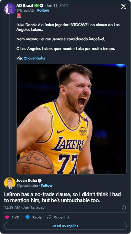 直播吧06月12日讯 今日,The Athletic湖人队记Buha在节目中表示东契奇是湖人的唯一非卖品。